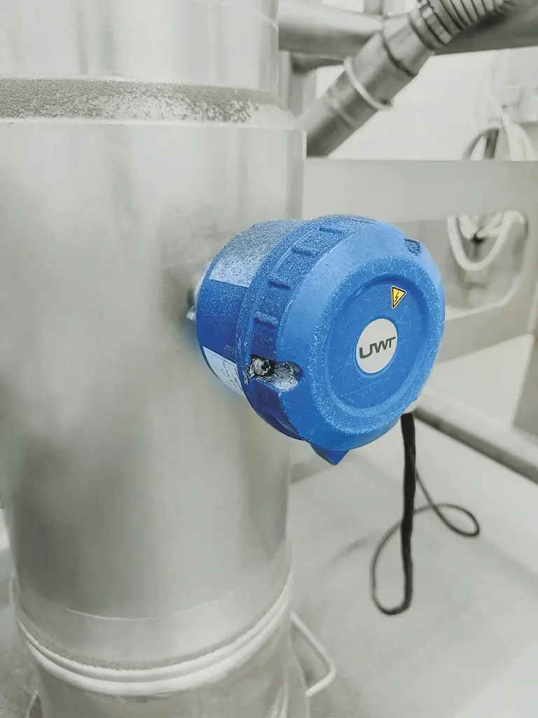 Die einfache Integration in bestehende Systeme wird durch die flexibel konfigurierbaren Anschlussspannungen erleichtert. So kann der Sensor direkt mit 120 V betrieben werden – passend zur Standard-Systemspannung der Anlage. Dank seiner robusten Bauweise ist der Sensor äußerst vielseitig einsetzbar: Er arbeitet zuverlässig und langlebig sowohl bei feinen Pulvern als auch bei grobkörnigen Schüttgütern. Durch die enge Zusammenarbeit mit dem Kunden vor Ort und den Einsatz maßgeschneiderter Sensortechnologie konnte UWT eine Lösung liefern, die den Produktionsprozess langfristig absichert – zuverlässig, hygienisch und effizient.